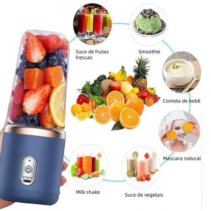 2 Copos Mini Liquidificador Espremedor Elétrico 6 Lâminas Portátil USB