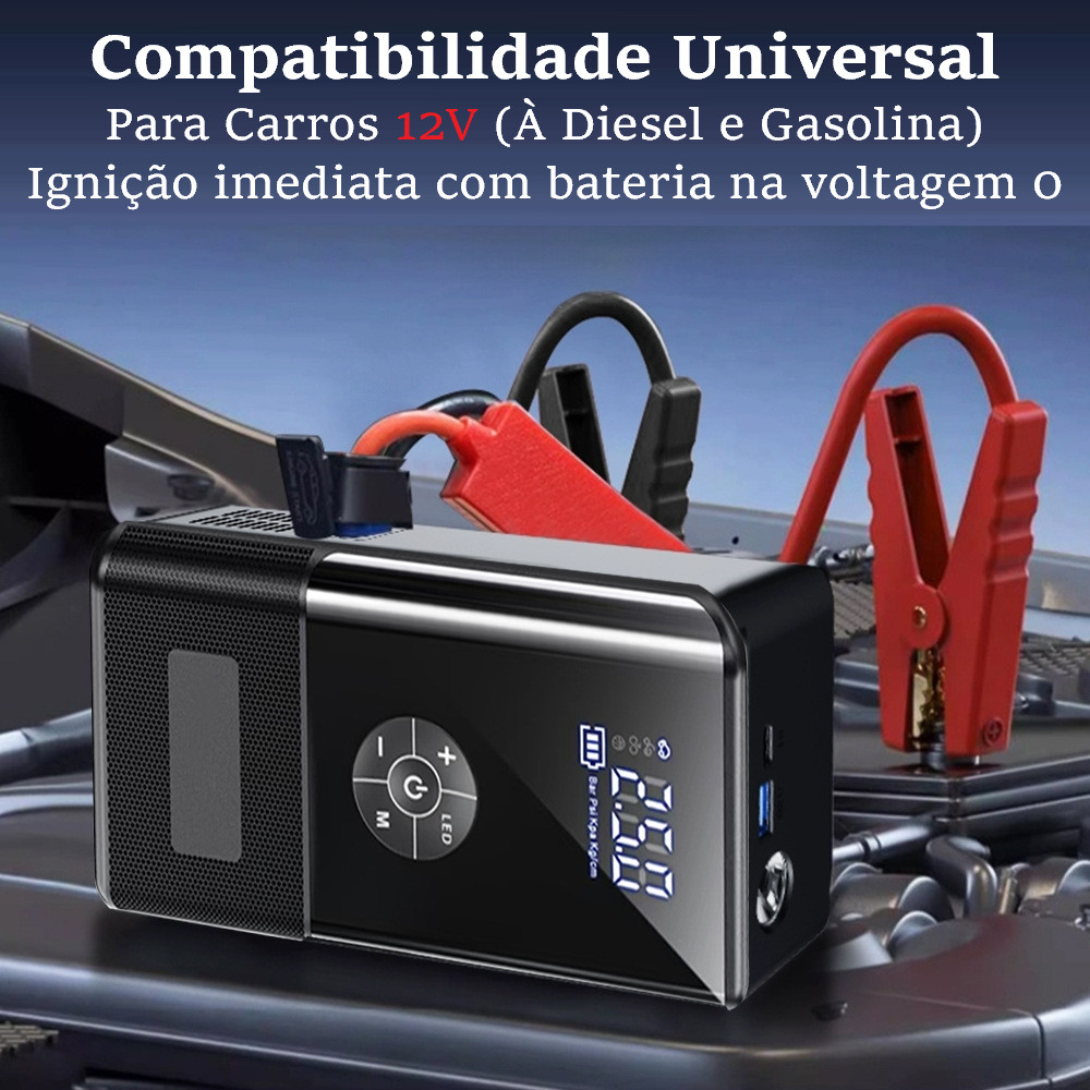 2 em 1 - Auxiliador Partida Compressor de Ar PowerBank Portátil Multifuncional Carregamento 12V