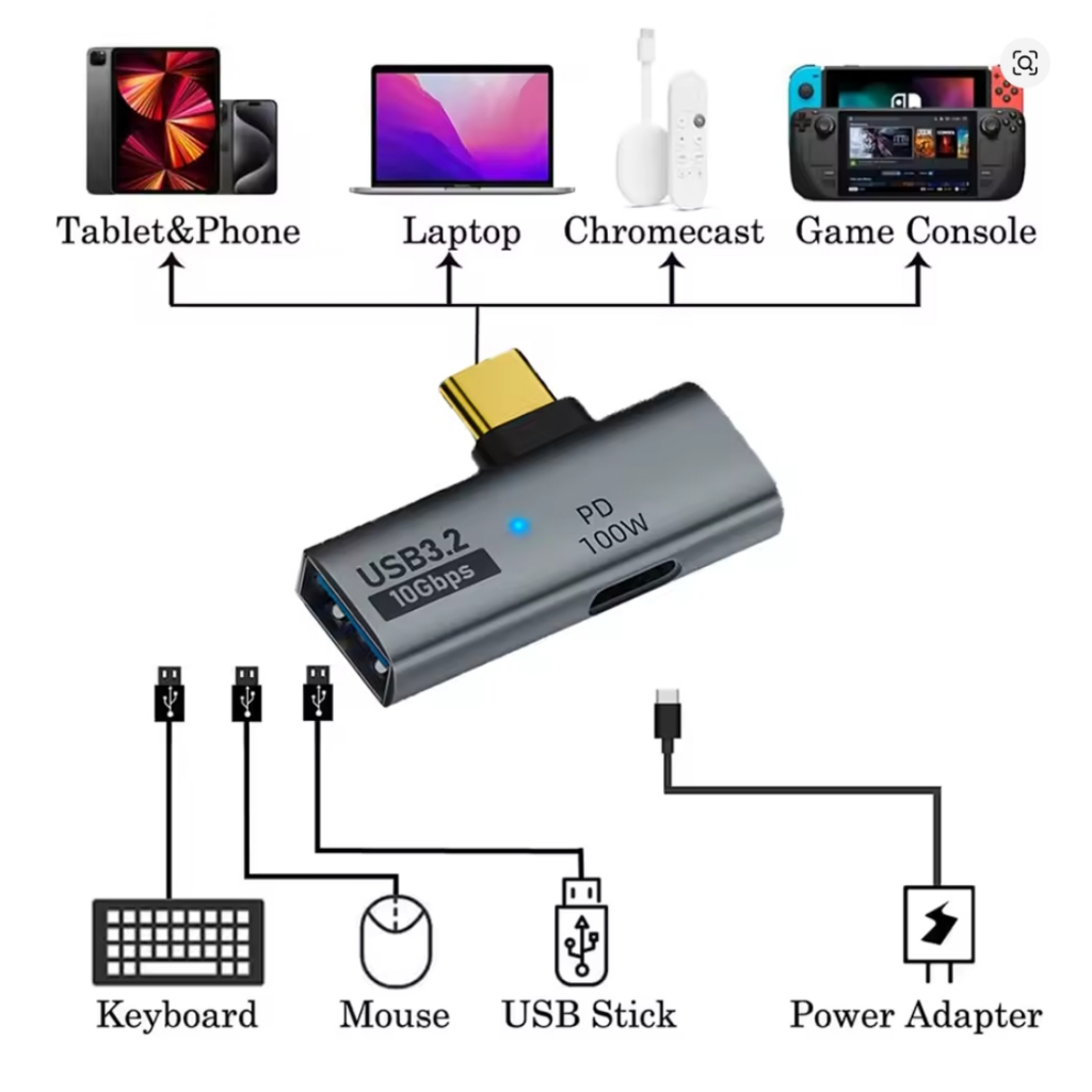 2 em 1 usb tipo-c para usb otg100w pd adaptador de carregamento para steam deck,chromecast google tv
