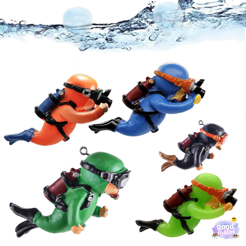 2 Enfeites De Aquário Mergulhador Fotógrafo Flutuante
