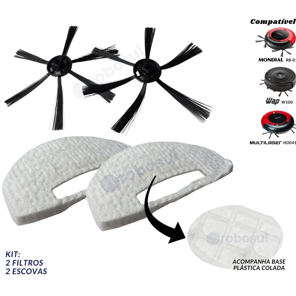 2 Escovas e 2 Filtros Para Robô Aspirador Multilaser HO041 e HO-041