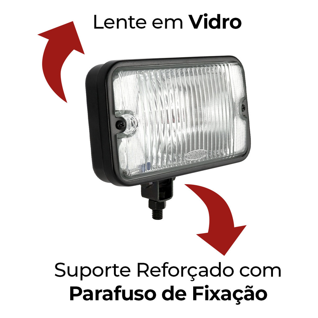 2 Farol De Milha Retangular Universal Lente Vidro Estriada
