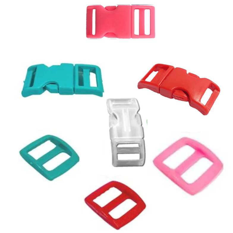 2 Fechos Engate Rápido 15mm colorido Para Alça De 15mm + 2 reguladores -passadores 15mm