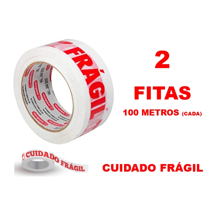 2 Fitas Adesiva Cuidado Frágil Medida 48mm X 100 metros (cada)