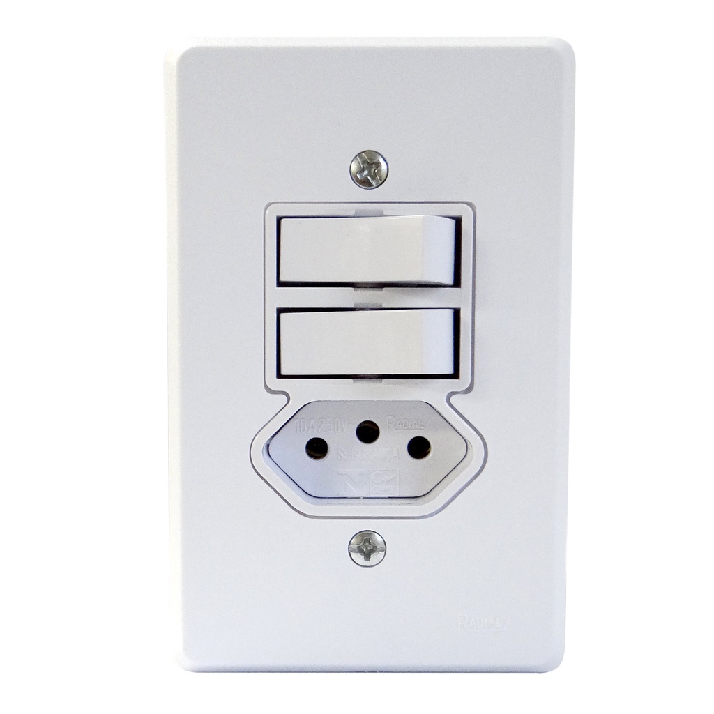 | 2 Interruptores Simples + Tomada 2P+T 20a Linha Gelo Radial este produto | R$ 16,50 | — | 4.9/5 | 35 |