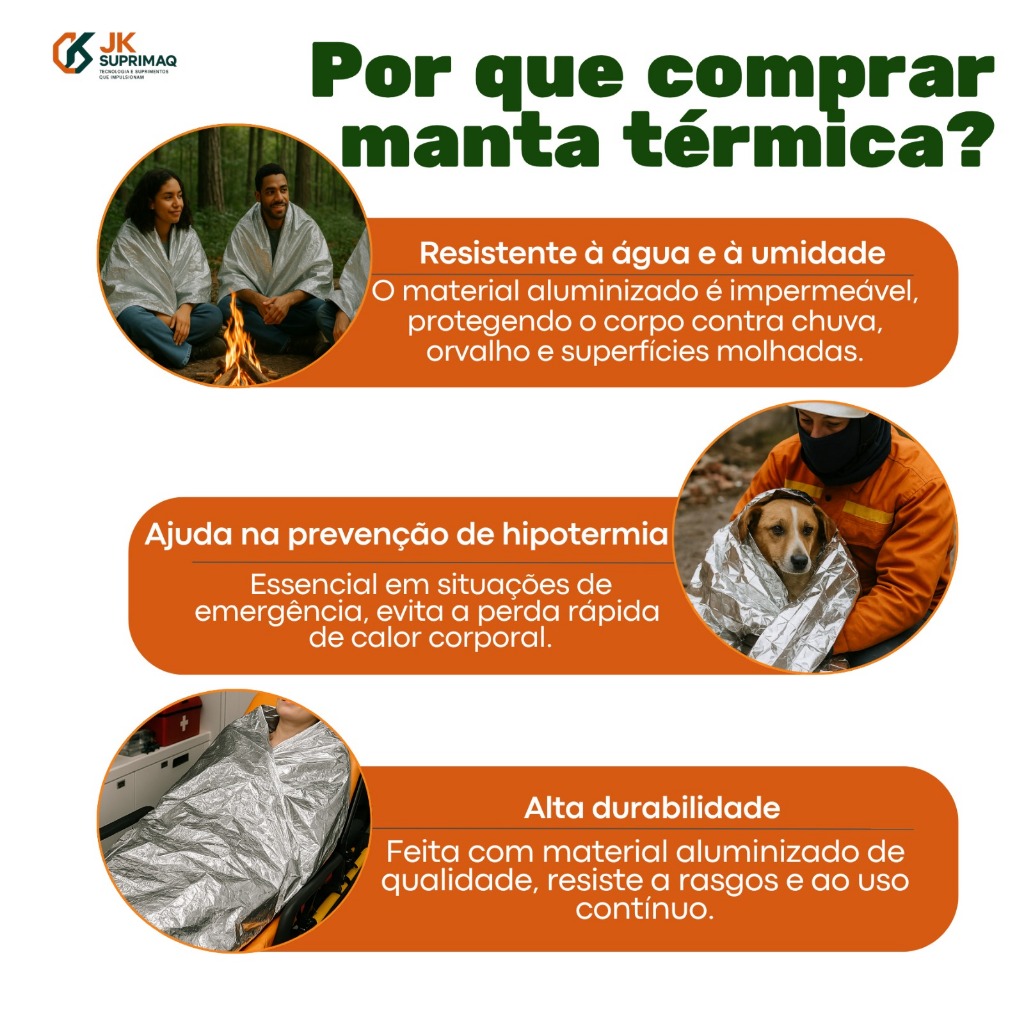 | Kit com 3 Mantas Térmicas Aluminizada para Emergência, Camping e Re... | R$ 23,75 | 17% | 4.9/5 | 165 |