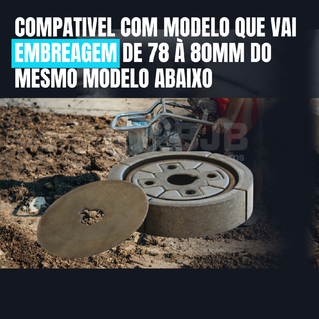 BJB EQUIPAMENTOS [ Leia atentamente a descrição antes de comprar o produto ] - Postagem no mesmo dia útil para vendas que cairem no sistema até 15h. - Emissão de Nota Fiscal Eletronica . - Produto de alta qualidade e durabilidade. - Aconselha-se um profissional para manutenção do seu equipamento. - Fotos meramente Ilustrativas das embreagens completas. ======================================== Compatibilidade: Toyama [TTR80] CSM MENEGOTTI SAKAI [HONDA GX100 HONDA GX120] BUFFALO EMIT TOWERS [DYNAPAC LT700], RAISMAN, VIPART , MATSUYAMA , MASALTA, VIBROMAK NAGANO MIKASA FORTEMAC. Compatibilidade de tipo de embreagem: Mola para embreagens 79,4mm de Diâmetro com furo chavetado de 15mm [ Conforme ilustração nas fotos do anuncio] Informações sobre o molas e embreagem: Cada embreagem completa levam duas molas. ========================================
