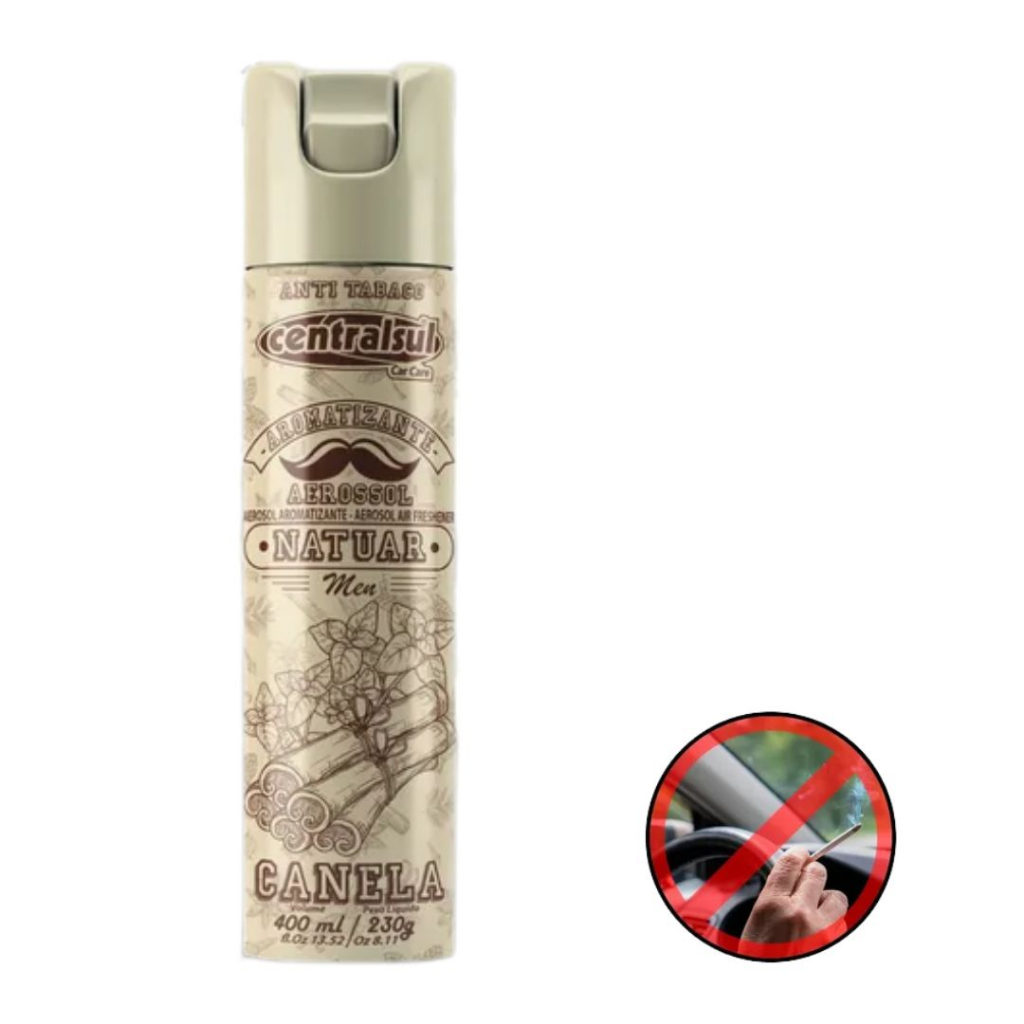 KIT COM 2 Neutralizador de Odores antitabaco VANTAGENS Formulado especialmente para eliminar o mau odor deixado após o uso de cigarros dentro de veículos. Deixa no ambiente uma fragrâncias de canela. Combate também odores de mofo. MODO DE USAR Agitar a embalagem, remover a tampa e aplicar dentro do veículo ou ambiente desejado. APLICAÇÕES Pode ser utilizado em veículos ou ambientes domésticos.