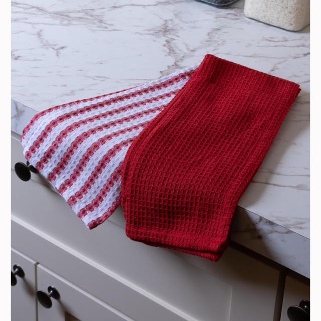 2 Panos de Prato Lyor Verona 60x40cm Vermelho Branco Algodão