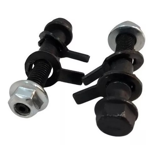 2 parafusos para correção do ângulo de cambagem, com 2 arruelas por parafuso Aplicação: Utilizada para corrigir o ângulo de Camber em até 1 45? para positivo ou negativo (dependendo do veículo) pela substituição do parafuso superior, em suspensões que usam amortecedores com 2 (dois) parafusos na base. Fácil Aplicação; ? Dispensa o uso de dispositivos hidráulicos; ? Reduz tempo de trabalho; ? Não danifica amortecedores e rolamentos; Modo de Operação: Afrouxar o parafuso de fixação inferior e retirar o parafuso de fixação superior; aplicar o DISPOSITIVO, conforme modelo do veículo; Girar o DISPOSITIVO até obter o ângulo desejado; Apertar manualmente o DISPOSITIVO (não utilizar Chave de Impacto) e re-apertar o parafuso inferior. Especificações técnicas: -Fabricado em aço especial de corpo único; -Temperado; -Banho Ecologicamente Correto (Preto) -Cabeça sextavada flangeada; -Acompanha arruela guia; Aplicação: - Fiat | GM | Renault | Mercedes | BMW | Suzuki | Volvo | VW | Peugeot | Chrysler | Alfa Romeu. - Trabalhamos apenas com produtos novos. - Enviamos para todos estados Brasileiros utilizando CORREIOS e TRANSPORTADORA. - Produto com garantia de 90dias. - Encomendas são despachadas diariamente, dentro de 24 horas.