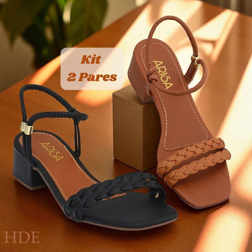 2 Pares de Sandália Salto Baixo Feminina Kit Fashion e Versátil
