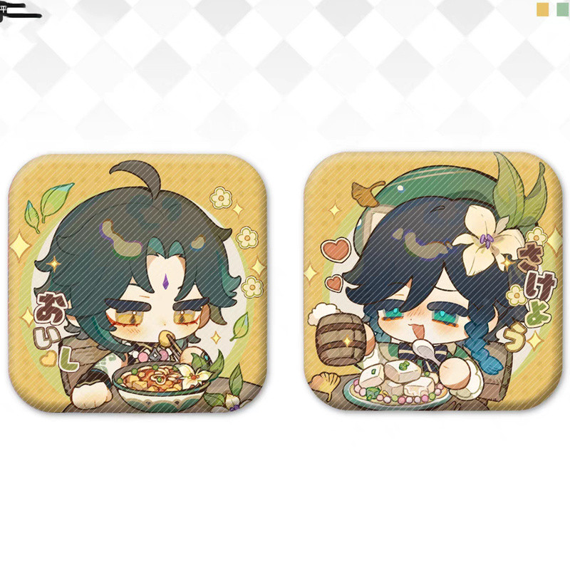 2 Pçs/Set Festa Dos Desenhos Animados Xiao Vigilante Yaksha Venti Jogo Quadrado Crachá Broche Pin Cosplay Emblema Decora