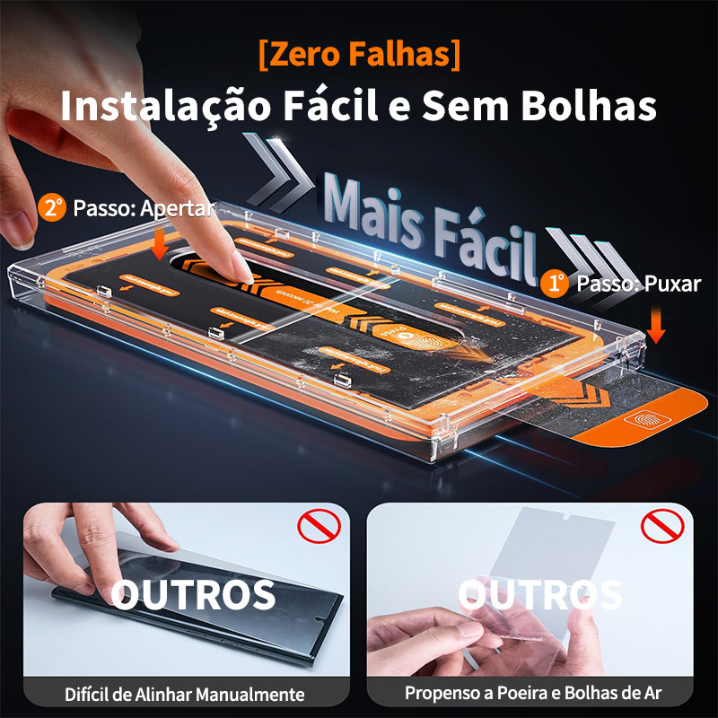 PRODUTO NO BRASIL ENVIO EM ATÉ 24 HORAS ÚTEIS COMPRE SEM CHANCES DE OCORRER TAXAÇÃO Apresentamos o kit mais completo do mercado para instalação de película de forma semi automática, proporcionando uma experiência de proteção superior para o seu aparelho. Recursos Destacados: CrystanlArmor você protege seu Samsung com eficiência, sem depender de terceiros. Desfrute de benefícios como menos tempo de instalação e alinhamento garantido. Basta colocar a bandeja sobre o telefone, pressionar o centro e observar o vidro aderir no lugar. A inovadora bandeja de instalação de alinhamento automático permite uma aplicação sem esforço, enquanto o revestimento oleofóbico evita marcas de impressões digitais, proporcionando uma experiência de visualização cristalina. Nossa caixa de instalação é à prova de poeira, eliminando preocupações com bolhas e neblina que ocorreram anteriormente com ferramentas de instalação regulares. Cubra, puxe a tira da tração, e a poeira será adsorvida automaticamente. O protetor de tela do Samsung será alinhado automaticamente, resultando em uma aplicação livre de poeira. ESPECIFICAÇÕES: Marca: CrystanlArmor Material: Vidro Temperado Tecnologia: Ultra HD Espessura: 0,33mm Tipo de proteção de tela: Frontal Grau de transparência: 97% HD Resistencia: Dureza 9H Dimensões: Cobre as dimensões da tela, podendo existir leves recuos para melhor utilização de capas. Proteção: Contra impactos e riscos à tela. COMPATIBILIDADE: Samsung;S22/S22Plus/S23/S23Plus+/S24/S24Plus/S24Ultra/S25/S25Plus/S25Ultra/S26/S26Plus/S26Ultra ITENS INCLUSOS: 2x Película Frontal 1x Aplicador que encaixa perfeitamente no seu modelo1x Kit de limpeza para pré instalação 1x Manual de instruções para instalação APLIQUE VOCÊ MESMO Faça a instalação da película na tela do seu aparelho com facilidade utilizando os acessórios exclusivos fornecidos com o produto. Um manual de instruções também está incluso para orientar o processo de instalação de forma clara e simples. CONTEUDO DO KIT DE INSTALAÇÃO: - Flanela Umedecida - Flanela de Microfibra - Adesivo Removedores de Resíduos - Espátula Aplicadora. ATENÇÃO: - Antes de comprar, certifique-se de que seus “DADOS PESSOAIS” e “ENDEREÇO DE ENTREGA” estão atualizados e corretos. - Se o modelo do seu Smartphone não se encontra na opção "Selecione o modelo" NÃO FAÇA A COMPRA! - Se você deseja efetuar a compra de duas ou mais unidades com variedades diferentes anunciados em nossa loja, por favor, utilize o modo “Carrinho” e selecione os modelos e quantidades corretas! - Após a compra não esqueça de confirmar o recebimento e nos qualificar! Seu Feedback é muito importante para nós! AINDA TEM DÚVIDAS? Entre em contato com a nossa equipe através do chat ou leia as avaliações de outros consumidores.