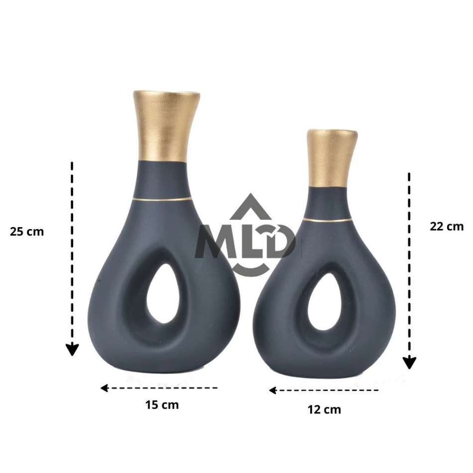Dupla de vasos de cerâmica com pintura Fosca alta tendência e design moderno e inovador. Peças que irão deixar qualquer ambiente ainda mais sofisticado e aconchegante, dando um charme para o seu lugar especial. Também cabem muito bem em uma decoração minimalista, por conta de seu aspecto curvilíneo com traços simples mas ao mesmo tempo sofisticados. Podem ser usadas para decorar os mais diversos ambientes, como sala, quarto, rack de tv, aparador, cozinha mesas de canto e centro, prateleira buffets e até mesmo festas. Combina com qualquer estilo de papel de parede, tapete e sua decoração pode ser utilizada em conjunto com porta retrato ou quadros decorativos até mesmo na decoração de aniversário. Ótima opção para presente de Natal e outras datas comemorativas Marca: MLD Decor Home Linha: Vasos artesanal da capital da Cerâmica (Referência no Brasi) Material: Cerâmica Cores: Preto / Branco / Vermelho / Verde / Rose Gold / Amarelo Acabamento: Dourado / Prata Dimensões do Produto: - Vaso 1 : 25 x 15 - Vaso 2 : 22 x 12 FOTOS REAIS DOS PRODUTOS DICAS PARA LIMPAR AS PEÇAS: É recomendado que se faça uso de espanador, pano seco ou levemente úmido para fazer a higienização das peças. NÃO recomendamos o uso de esponja ou palha de aço, porque podem desgastar o esmalte das peças. ------------------------------------------------------------------------------------------------------------- ENVIO DAS PEÇAS: Nossas peças são tratadas com carinho para chegar até a sua casa. Muito bem embaladas com papelão, jornal e caixas individuais, para que não haja risco de quebra de nenhum produto. ------------------------------------------------------------------------------------------------------------- MLDecor-Home Localizado em Porto Ferreira cidade referência na Cerâmica artística e Decoração. Garantia de 90 dias para peças com defeito de fabricação.