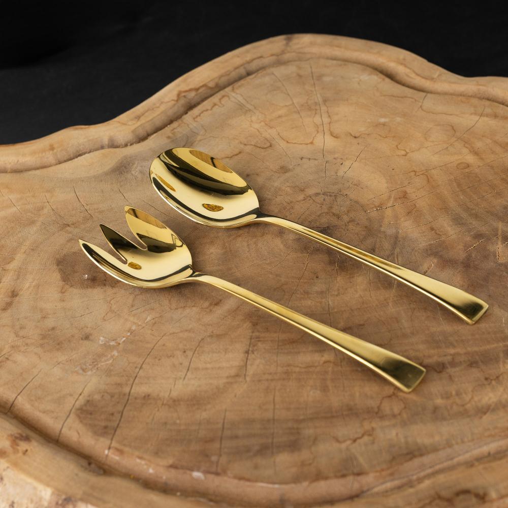 2 Peças Colher e Garfo para Salada Wolff Berna Dourado