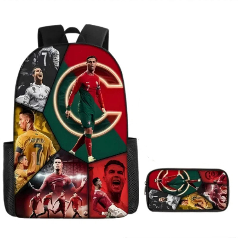 2 Peças/Conjunto Mochila Infantil + Caixa De Lápis Cristiano Ronaldo Escola Bolsa Escolar Leve Confortável Impermeável