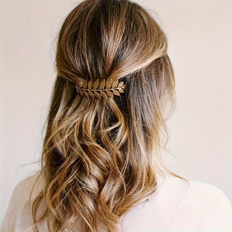 2 Peças De Grampos De Cabelo De Folha De Ouro Design Minimalista De Cor Sólida Para Mulheres Uso Diário Festa Casual