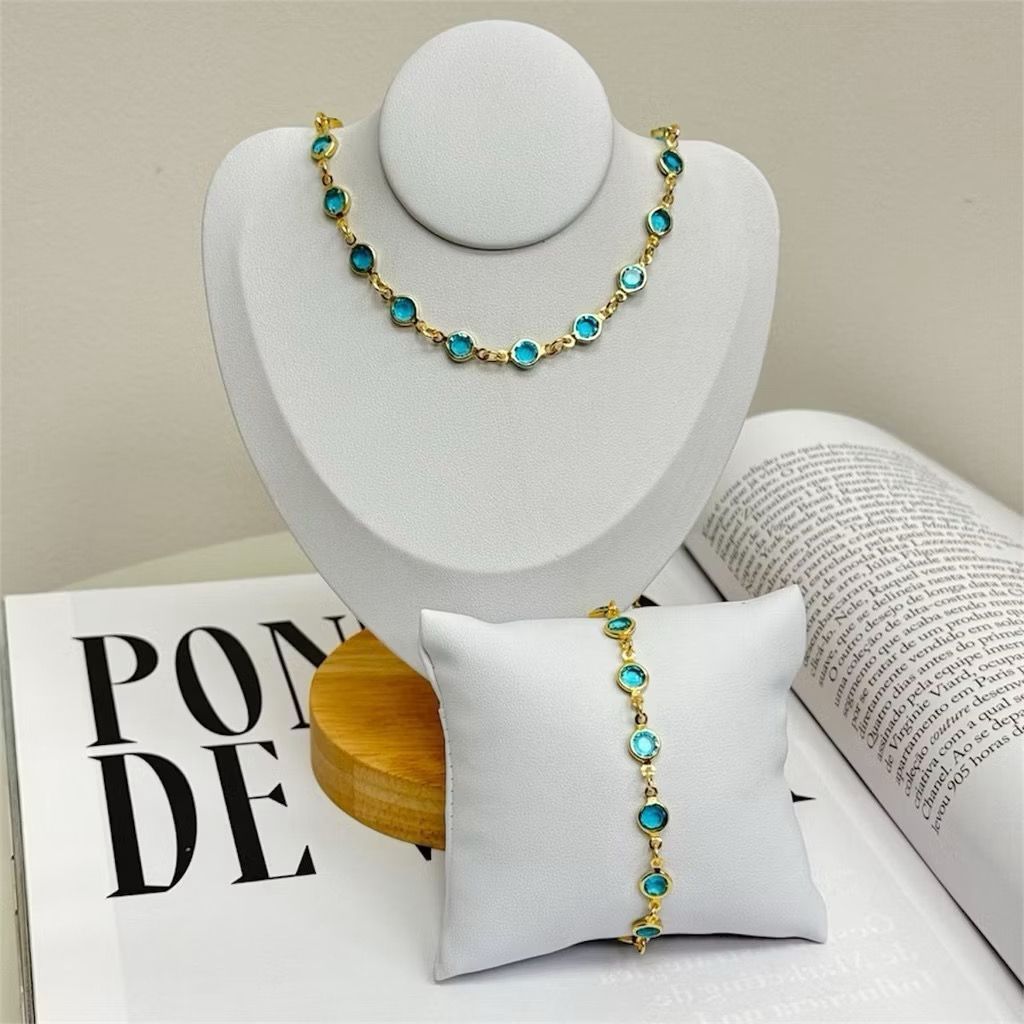 2 Peças - Gargantilha + Pulseira Zircônia Banhada Ouro 18K