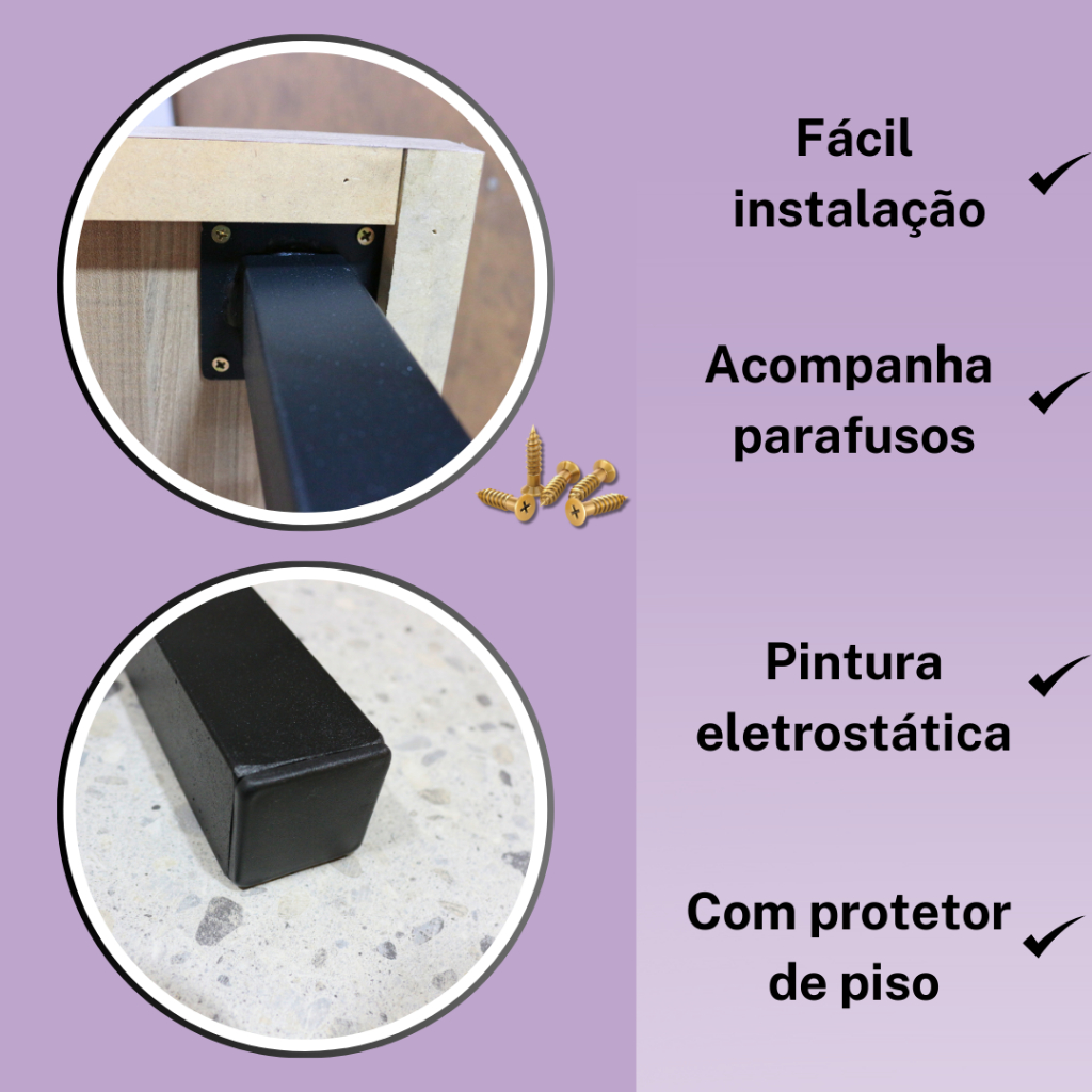 Pés de mesa em ferro com design moderno e alta durabilidade. O kit com 2 pés de mesa Cannes Slim Slim é a solução ideal para quem busca renovar seus móveis com um toque industrial e elegante. Com 90cm de altura e acabamento preto fosco, esses pés proporcionam um visual clean e sofisticado. Características: - Kit com 2 unidades - 90cm de altura - Cor preta - Modelo slim: metalon 3x3cm Construção robusta: Base em aço maciço e metalon 3x3cm em aço carbono garantem resistência e durabilidade. Proteção contra ferrugem: Tratamento químico e pintura eletrostática com cura automatizada evitam a corrosão. Fácil instalação: Com apenas uma chave philips, você monta seus móveis de forma rápida e simples. Design versátil: O modelo slim e a cor preta combinam com diversos estilos de decoração. Proteção do piso: Ponteiras plásticas evitam riscos e arranhões. Vantagens: Durabilidade: Resistentes a impactos e corrosão. Facilidade de instalação: DIY (faça você mesmo) simples e rápido. Estilo: Design moderno e elegante. Qualidade: Materiais de alta qualidade e acabamento impecável. Ideal para: Mesas, bancadas e aparadores. Com os pés de mesa Cannes Slim Slim, você transforma seus móveis com praticidade e estilo!