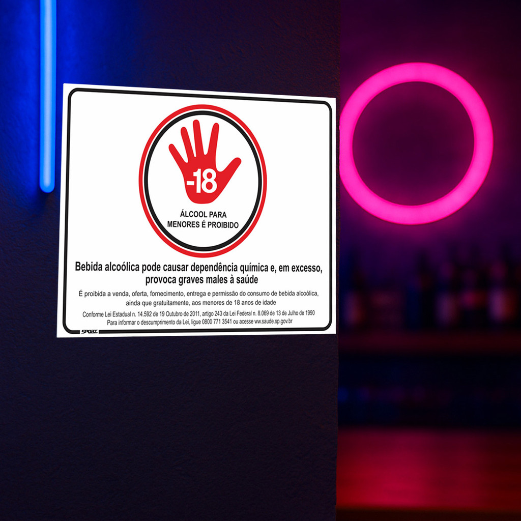 Placa "Álcool Para Menores é Proibido" – 15x20cm Consumo consciente começa com responsabilidade! Com a placa “Álcool para menores é proibido”, você reforça o cumprimento da lei, promove um ambiente mais seguro e demonstra o compromisso com a proteção de jovens e o respeito a todos. Produzida em Poliestireno (PS) 1mm, é leve, resistente e de fácil instalação Destaques do Produto: Tamanho: 15x20cm Material: PS 1mm com impressão em silk screen, garantindo excelente durabilidade e nitidez Aplicação Simples: Acompanha fita dupla face de alta fixação Visual Profissional: Cores vivas e de fácil leitura, mesmo à distância e em diferentes horários do dia Resistente à água e umidade: Pode ser usada em áreas internas e externas Instalação Flexível:Fixe com a fita inclusa, parafusos ou abraçadeiras, conforme a necessidade. Conteúdo da embalagem:2 placas + 1 conjunto de fita dupla face
