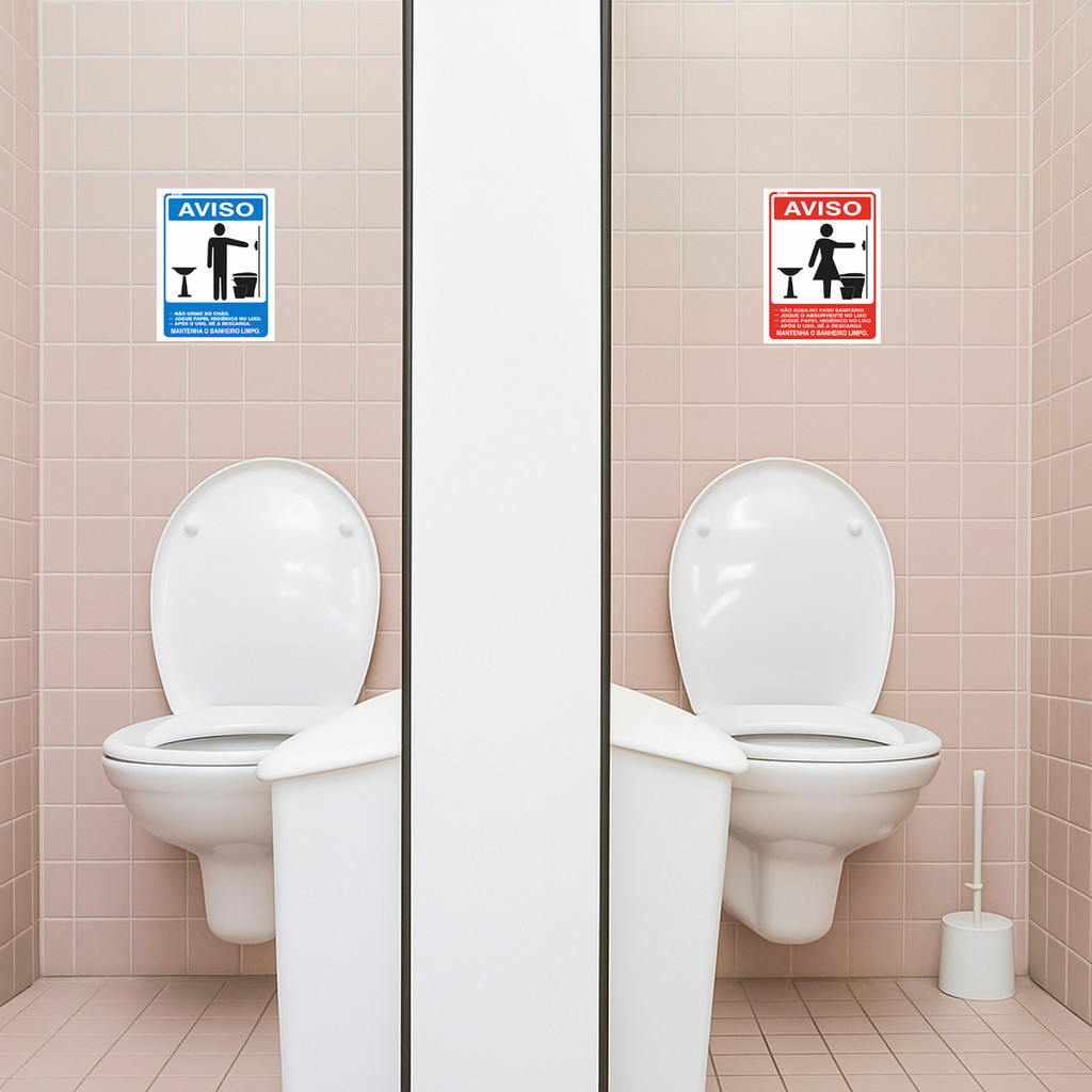 2 Placas "Aviso Sinalização Mantenha O Banheiro Limpo Regras" – 20x15cm Organização e respeito para todos! Com o Kit de Placas de Sinalização "Mantenha o Banheiro Limpo – Regras", você promove a conscientização, reforça hábitos de higiene e contribui para um ambiente mais limpo, organizado e respeitoso para todos os usuários. Produzida em Poliestireno (PS) 1mm, é leve, resistente e de fácil instalação Destaques do Produto: Tamanho: 15x20cm Material: PS 1mm com impressão em silk screen, garantindo excelente durabilidade e nitidez Aplicação Simples: Acompanha fita dupla face de alta fixação Visual Profissional: Cores vivas e de fácil leitura, mesmo à distância e em diferentes horários do dia Resistente à água e umidade: Pode ser usada em áreas internas e externas Instalação Flexível:Fixe com a fita inclusa, parafusos ou abraçadeiras, conforme a necessidade. Conteúdo da embalagem:2 placas + 1 conjunto de fita dupla face