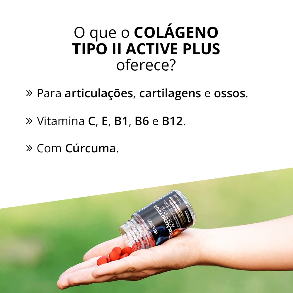 2 COLÁGENOS TIPO II COMPOSTO POR 2 COLÁGENOS TIPO II - CADA POTE CONTÉM 30 COMPRIMIDOS O colágeno do tipo 2 é uma proteína não-desnaturada com alto peso molecular, sua produção se dá em temperaturas mais baixas, mantendo a integridade da proteína, que não se torna hidrolisada, ou seja, “quebrada” em partículas menores. Contém substâncias que auxiliam no benefício do sistema imunológico, ajudando a prevenir doenças e na saúde em geral. Recomendado para prevenir condições articulares como osteoartrite e artrite reumatoide, além de auxiliar na recuperação muscular. Sua ação contribui na melhora da saúde articular, prevenindo dores durante e após a prática esportiva. O modo de uso envolve a ingestão de um comprimido por dia, concentrando sua ação nas articulações, cartilagens e ossos.