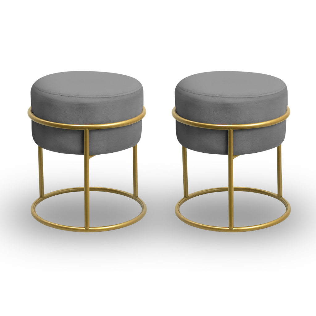 Especificações: Tecido Veludo. Base em estrutura em Aço com pintura eletrostática Espuma D23. Suporta até 100kg cada. Conteúdo da Embalagem: 02 - Bases. 02 - Estofados. Dimensões do produto montado: Altura: 45 cm Largura: 37 cm Profundidade: 37cm Medidas Estofado: Altura: 19 Cm Largura: 34 Cm Profundidade: 34 Cm Medidas Base Metálica: Altura: 34 Cm Largura: 37 Cm Profundidade: 37 Cm.