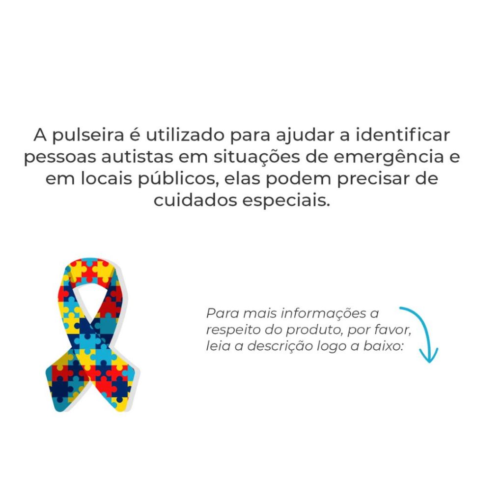 Por favor leia a descrição com atenção! Lindas Pulseiras p/ Autismo/autistas, são uma ótima opção para presentear alguém ou a si mesmo(a)! As pulseiras de identificação para autistas é uma ferramenta importante que oferece segurança e tranquilidade a indivíduos com autismo e suas famílias. Nossas pulseiras, discretas e confortáveis, servem como um meio eficaz de comunicação, tornando mais fácil para os outros entenderem e respeitarem as necessidades especiais do usuário. Especificações: - Tamanho: 19,5x1,5cm - Material: Borracha de alta qualidade. - Peso aproximado: 10g Anúncio referente a 2 unidades. Garantia do vendedor: 7 dias