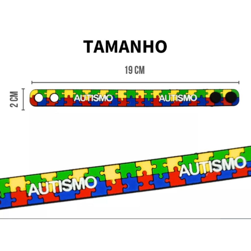 Por favor leia a descrição com atenção! Lindas Pulseiras p/ Autismo/autistas, são uma ótima opção para presentear alguém ou a si mesmo(a)! As pulseiras de identificação para autistas é uma ferramenta importante que oferece segurança e tranquilidade a indivíduos com autismo e suas famílias. Nossas pulseiras, discretas e confortáveis, servem como um meio eficaz de comunicação, tornando mais fácil para os outros entenderem e respeitarem as necessidades especiais do usuário. Especificações: - Tamanho: 19,5x1,5cm - Material: Borracha de alta qualidade. - Peso aproximado: 10g Anúncio referente a 2 unidades. Garantia do vendedor: 7 dias