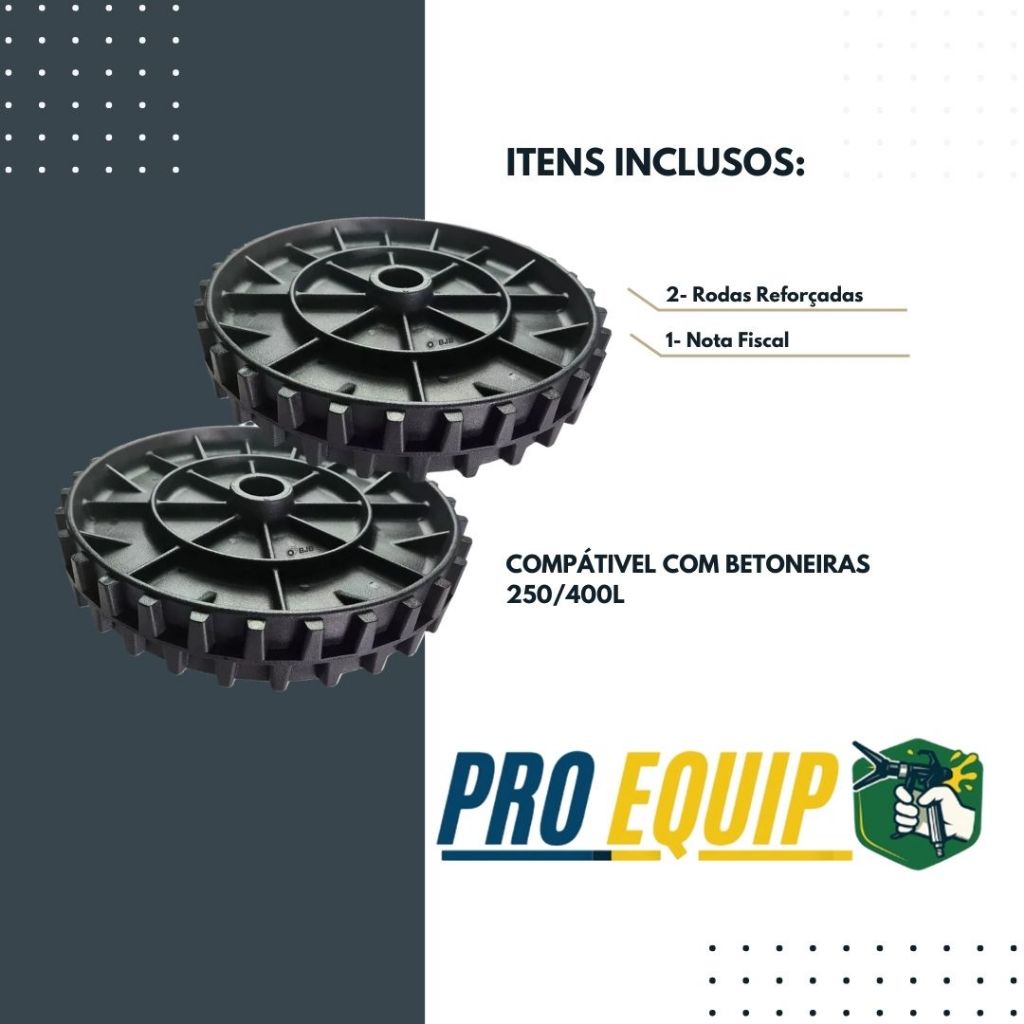 Roda Reforçada Maciça para Betoneira 400L / 250L - Compatível com CSM, Menegotti e Metalpama. "Acompanha Duas Rodas No Kit" "2 Rodas Reforçadas" Descrição do Produto: Garantindo alta qualidade, durabilidade e eficiência, esta roda maciça foi desenvolvida para atender às necessidades de equipamentos de grande porte como betoneiras de 400 litros. Ideal para profissionais que buscam performance e confiabilidade, ela é compatível com os modelos CSM 400 Litros, Menegotti 400 Litros e Metalpama 400 Litros. Fabricada no Brasil com material plástico de alta qualidade, sua composição oferece resistência ao desgaste, suportando condições de trabalho exigentes em obras e construções. O design reforçado assegura maior durabilidade, reduzindo a necessidade de substituições frequentes. Características Técnicas: Produção: Nacional Material: Plástico de alta qualidade Furo: 43mm Diâmetro: 375mm Compatibilidade: CSM 400/250 Litros Menegotti 400/250 Litros Metalpama 400/250 Litros Diferenciais: *Envio Rápido: Postagem garantida no mesmo dia útil para pedidos aprovados até as 15h. *Nota Fiscal Eletrônica: Compre com segurança, emissão de nota fiscal eletrônica inclusa. Instalação Profissional Recomendada: Para garantir o melhor desempenho e evitar danos ao equipamento, é aconselhável que a manutenção seja realizada por um profissional qualificado. Observações: Caso tenha dúvidas sobre a compatibilidade com o seu equipamento ou características específicas, utilize o campo de perguntas para obter mais informações. Nossa equipe está à disposição para ajudar! Garanta agora mesmo este item indispensável para o bom funcionamento de sua betoneira. Segurança, qualidade e confiança para o seu dia a dia na obra.