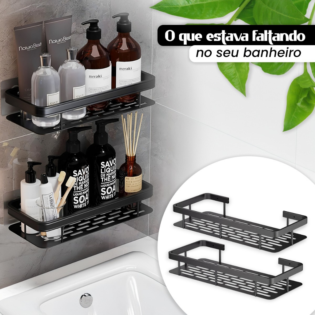 2 Suporte Porta Shampoo Sabonete Banheiro Adesivo Reforçado Preto