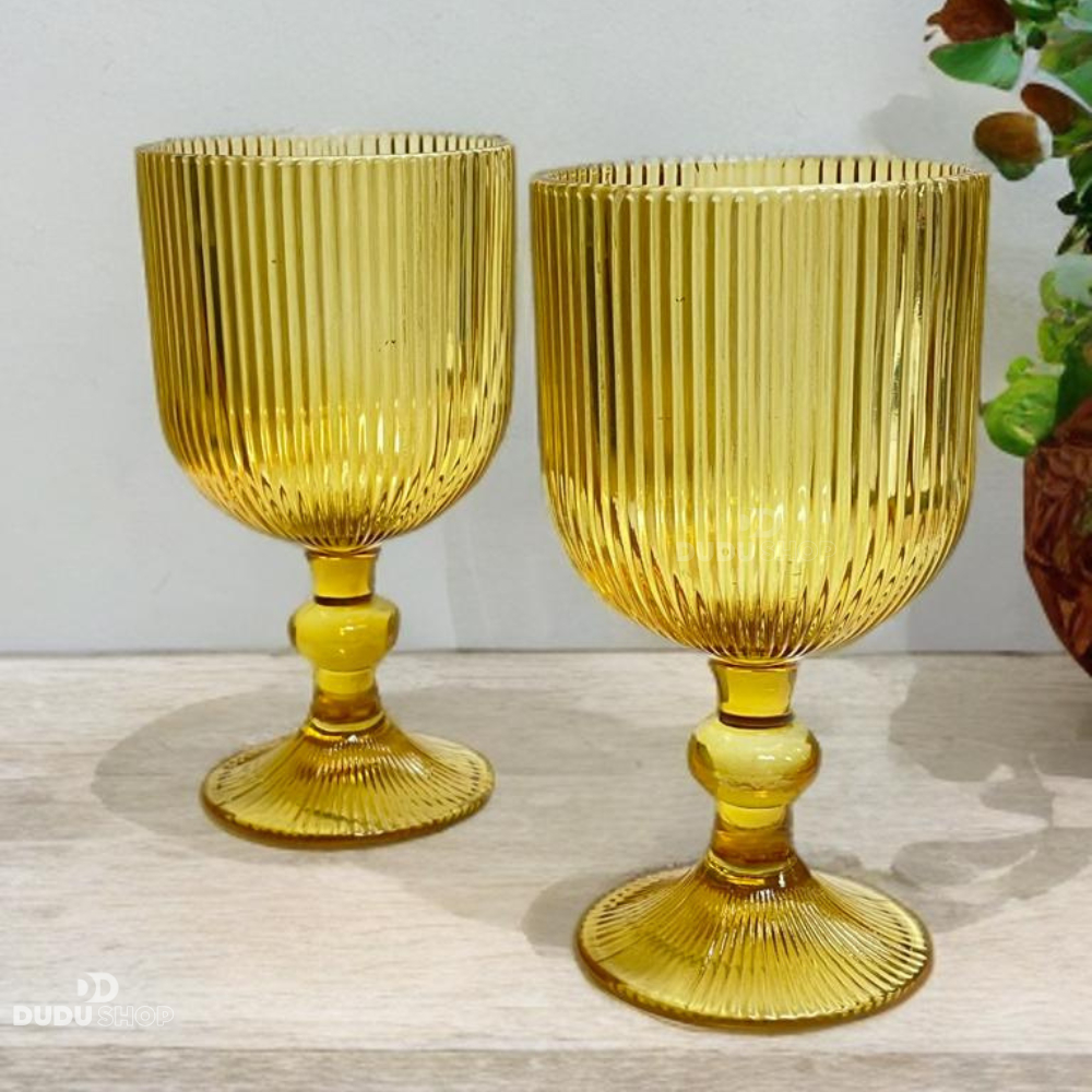 2 Taças De Vidro Canelada Âmbar Taça Cozinha Casa Taça Amarelo Vidro 380ml