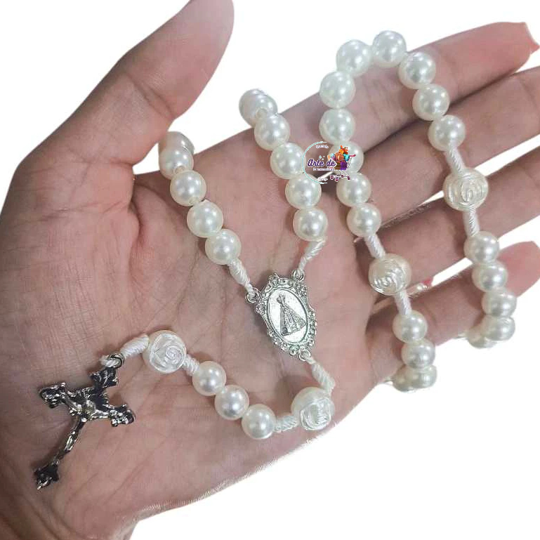 2 Terço Nossa Senhora Aparecida Pérola Devoção sem fecho - 35 cm - PROMOÇÃO