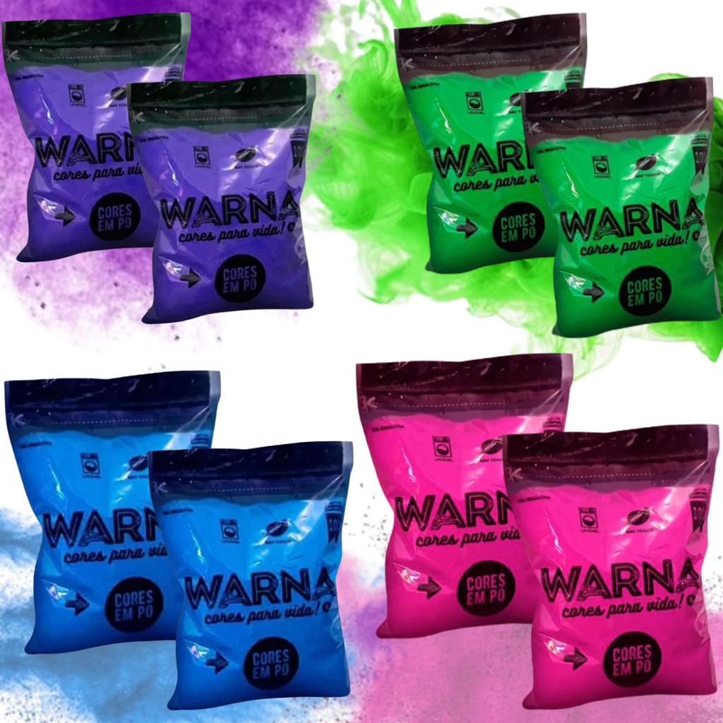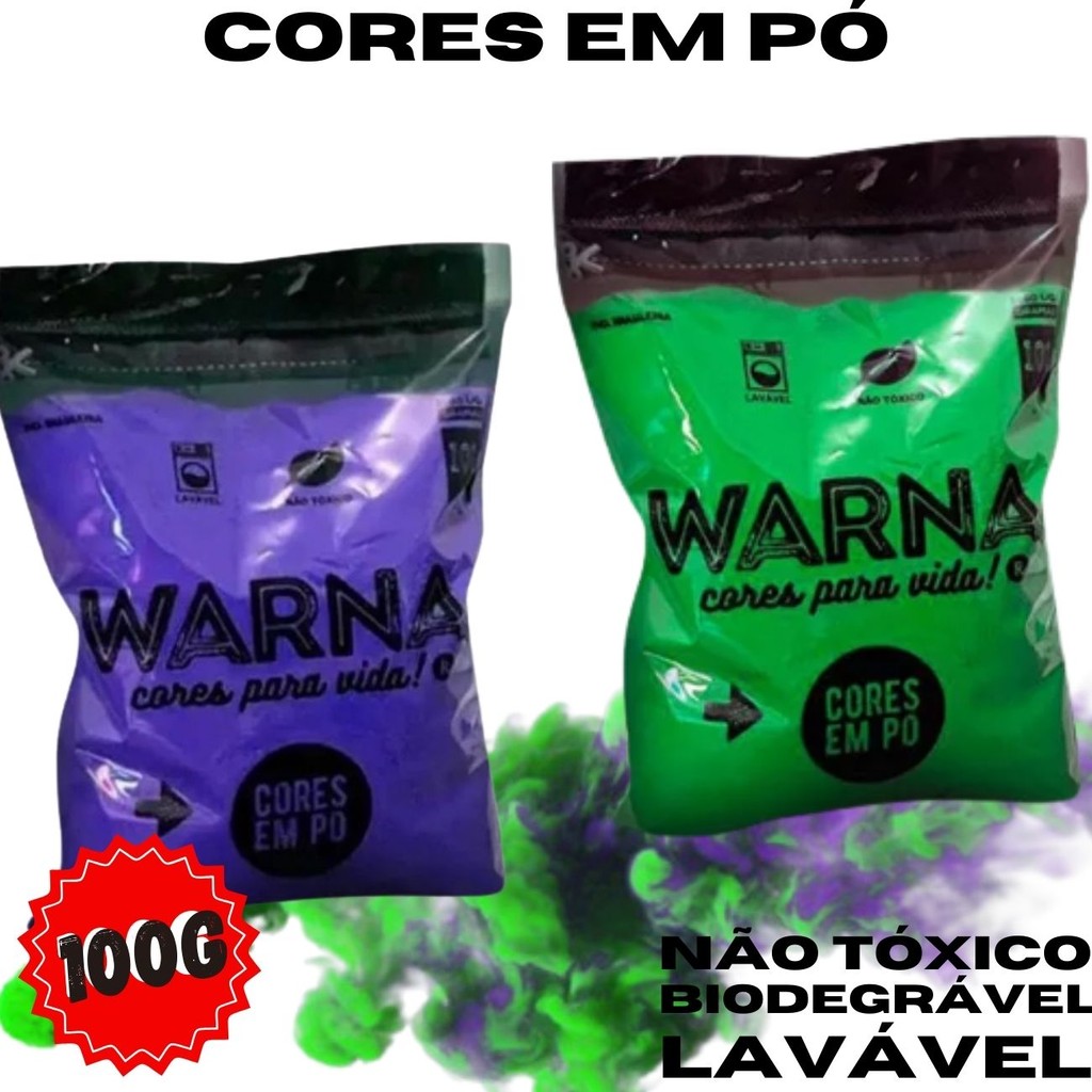 2 Pacotes de Tintas em Pó Colorido! Disponível nas cores azul, rosa, roxo, verde e em combinações sortidas (azul-rosa ou verde-roxo), essas tintas são ideais para criar aquele momento mágico e vibrante que todos esperam em uma revelação de gênero. Cores Vibrantes para Uma Revelação Única As cores vivas e intensas do nosso kit criam um visual impactante e cheio de emoção, garantindo fotos incríveis e lembranças inesquecíveis. Seja em um lançamento de balões ou em uma explosão de pó colorido, suas fotos e vídeos ficarão espetaculares! PACOTE INCLUI: 2 SAQUINHOS EM PÓ COM 100 GRAMAS CADA CARACTERÍSTICAS: - NÃO TÓXICO: O pozinho Warna é produzido de amido de milho, água e corantes alimentícios, quais são ingredientes não tóxicos. - BIODEGRADÁVEL: O nosso pozinho Warna não agride o Meio Ambiente, já que é biodegradável. - É LAVÁVEL: Usamos corantes alimentícios na nossa produção, quais não são usados para pintura permanente. Testamos em vários tipos de tecidos e em geral as cores saem com facilidade. - EVITE CONTATO NOS OLHOS E MUCOSA! Caso haja contato, poderá causar incômodo igual qualquer outro material estranho em contato com os olhos, no caso, lavar com água por alguns minutos e/ou usar produtos adequados para limpeza dos olhos. Ao adquirir o produto, você também adquire qualidade e um produto ideal para sua festa ou confraternização! REUSE. REDUZA. RECICLE. BALÃO METALIZADO ATENÇÃO: - Não recomendável para menores de 2 anos. - As crianças podem ser asfixiar com um balão vazio ou partes de um balão danificado. - Os adultos devem encher os balões e supervisionar o uso feito por crianças menor de 6 (seis) anos. - Descartar imediatamente os balões danificados. - Balões metílicos podem conduzir eletricidade. - Nunca use fita metálica para segurar os balões. - Quando ligado a uma fita longa – risco de emaranhamento. - Não solte ao ar livre, não use perto de ligas elétricas. - O uso incorreto pode causar ferimentos pessoais. - Água fria poderá danificar a tinta dos balões. - INFORMAÇÃO: - O ar frio pode fazer com que o balão pareça vazio e a exposição ao ar quente irá restaurar o produto. - Favor não expor o balão ao calor extremo, pois pode causar o estouro do mesmo. - Esse balão pode ser inflado de ar normal ou gás hélio para flutuar (segurar por haste ou fitas). - Produto recarregável.