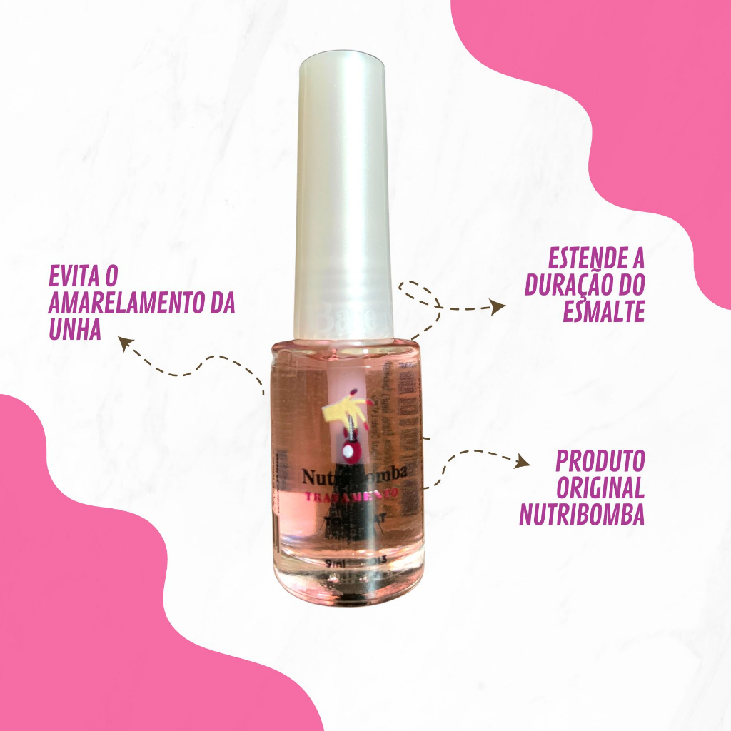 A Tavares E-commerce é uma loja online que tem como objetivo oferecer a melhor experiência de compra para seus clientes, facilitando e auxiliando no que for possível para que você tenha uma compra segura, rápida e fácil. Estamos sempre à disposição no que precisar. Descrição do produto O Top Coat Nutribomba é utilizado para finalizar a esmaltação das suas unhas, protegendo a cor, aumentando o brilho e a durabilidade do esmalte. Com esse produto maravilhoso você consegue corrigir imperfeições da esmaltação e evitar o amarelamento da cor aplicada sobre as unhas. Top Coat ideal para uma finalização perfeita, pois de nada adianta uma esmaltação sem finalizar com chave de ouro. Modo de uso: Agitar antes de usar. Aplique sobre as unhas e aguarde secar. Utilizar sempre uma base de unhas antes do esmalte. Validade 2 anos, com reposição de novos produtos toda semana. Produto original com revenda autorizada. *Fotos com direitos autorais registrados.