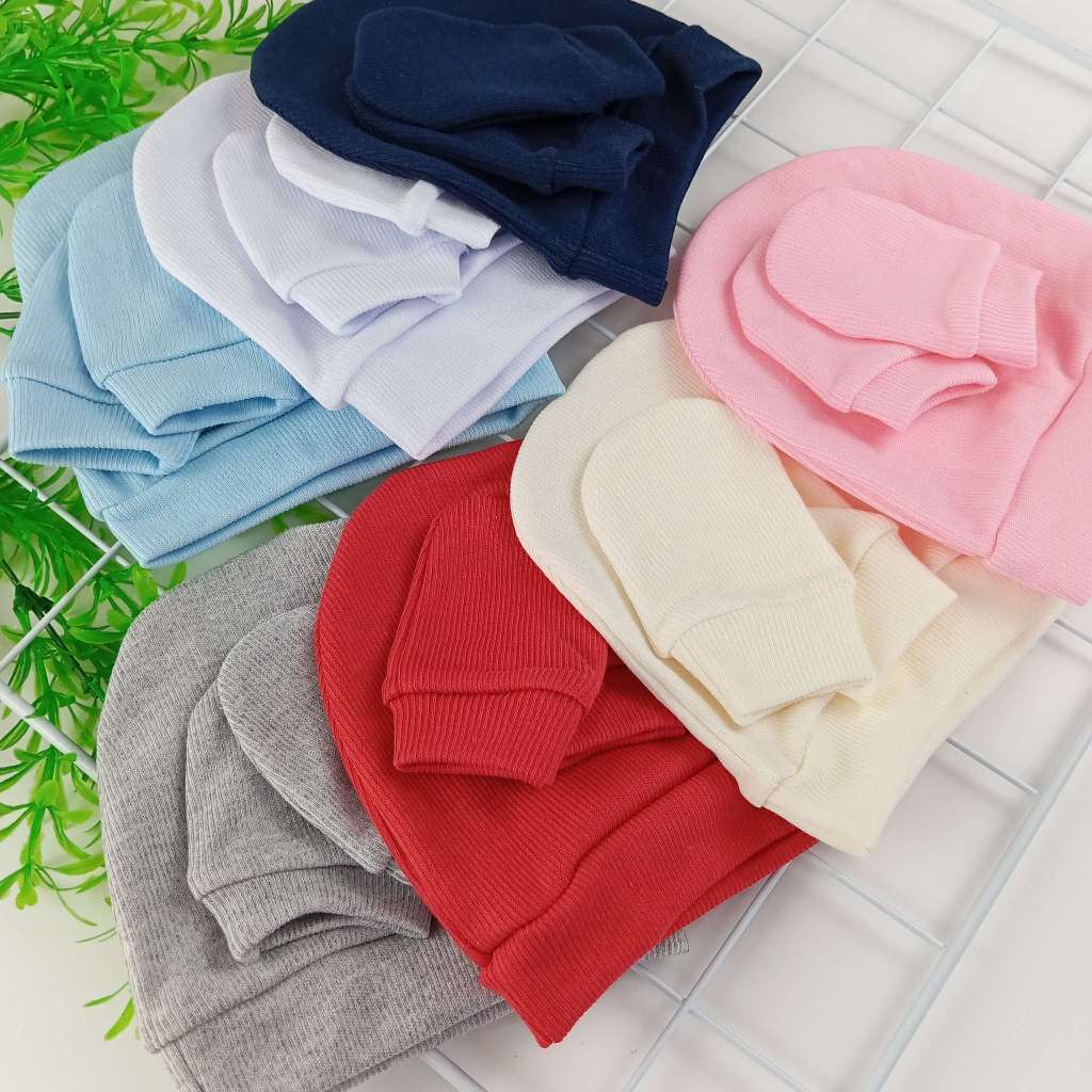 2 Toucas e 2 Luvas Bebê Recém Nascido Enxoval Saída de Maternidade Malha Canelada NÃO TROCAMOS CORES