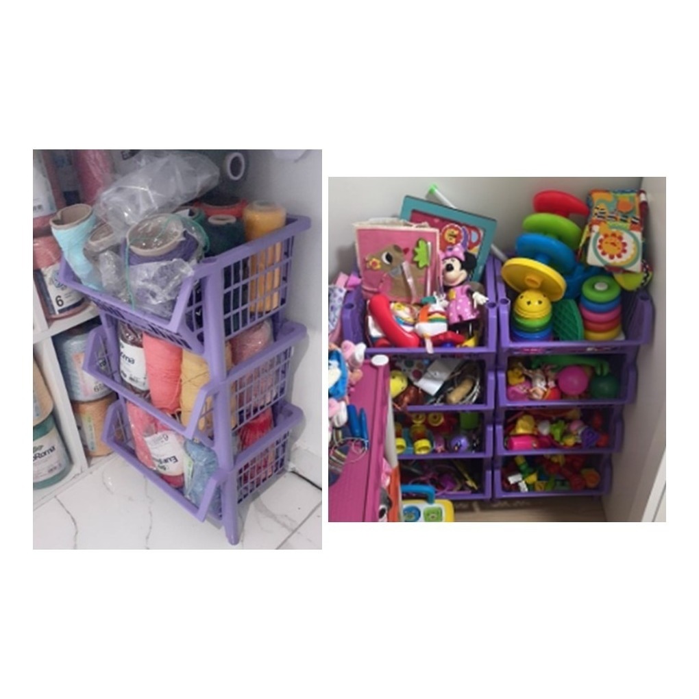 2 Und. Cesto Expositor Reforçado Gondola Organizador Empilhável Multi Uso Cores 44 X 34 X 26 cm