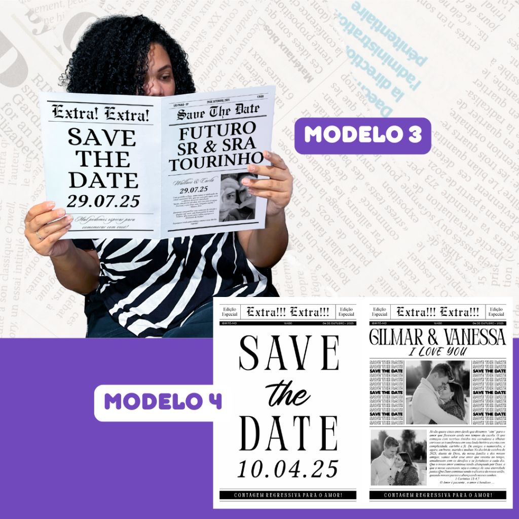 2 UNIDADES | JORNAL SAVE THE DATE PERSONALIZADO PRETO E BRANCO PRE WEDDING (COD JSV0100)