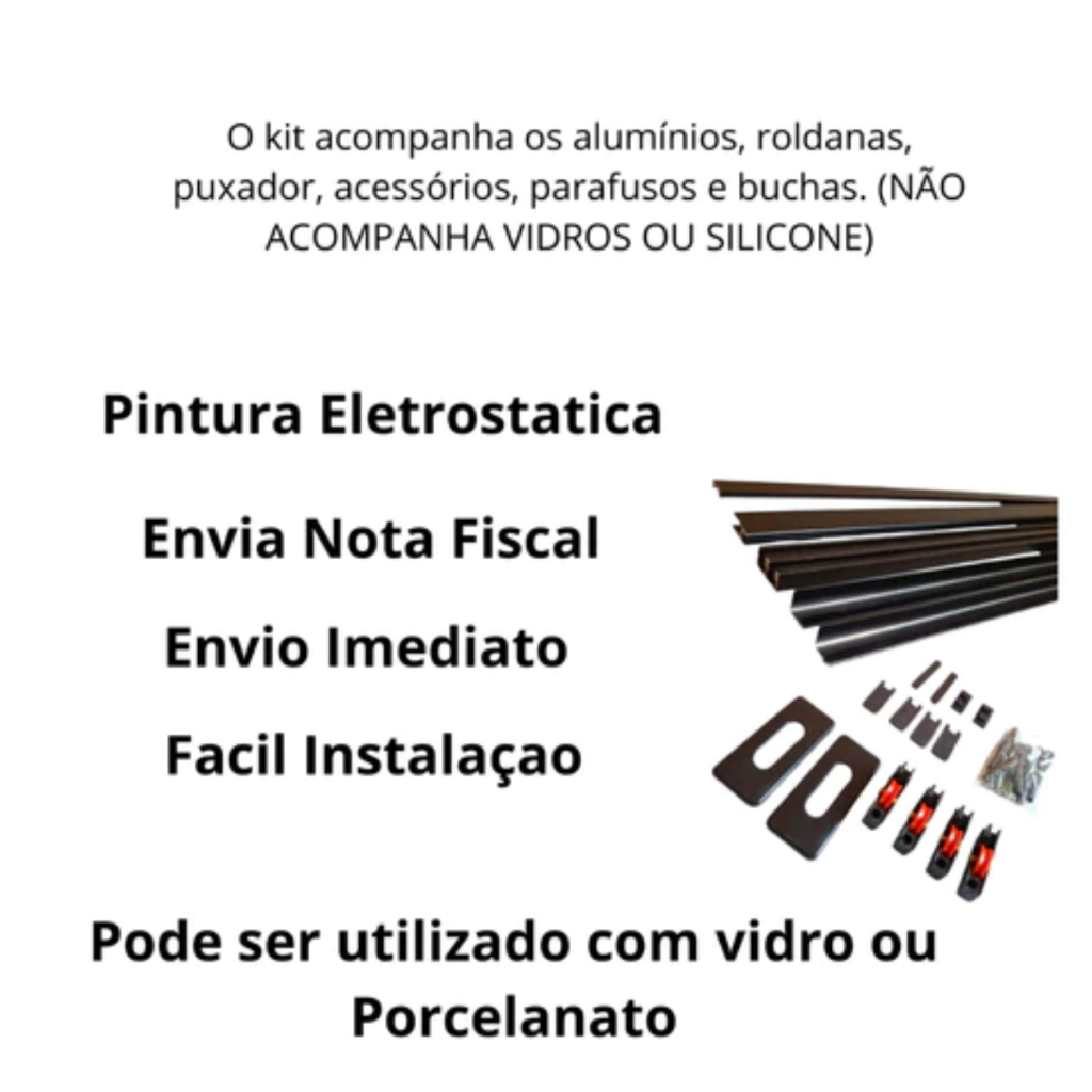 Conteúdo: 02UN. KIT PIA 1,50 X 1,20 Kit Alumínio p/ Fechamento de Pia 1,50 (largura) x 1,20 (altura) 02 Vidros Correm Cores do Alumínio e acessórios: Branco, Fosco (cinza) ou Preto. O kit acompanha os alumínios, roldanas, puxador, acessórios, parafusos e buchas. (NÃO ACOMPANHA VIDROS OU SILICONE) ATENÇÃO: O VALOR DO ANÚNCIO NÃO ENVOLVE QUALQUER VIDRO KIT COMPLETO. ACESSÓRIOS E ALUMÍNIO DE PRIMEIRA QUALIDADE NÃO ACOMPANHA VIDRO, PREÇO SOMENTE DO KIT DE ALUMÍNIO COM AS ROLDANAS, PUXADOR E ACESSÓRIOS.