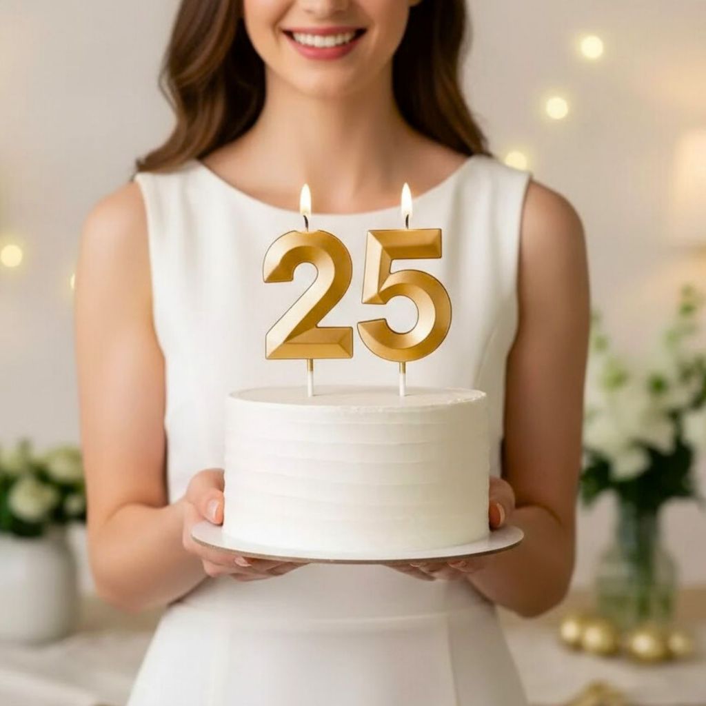 2 Velas De Aniversário Grande Design Números Dourada Perolizada Festa Luxo Premium