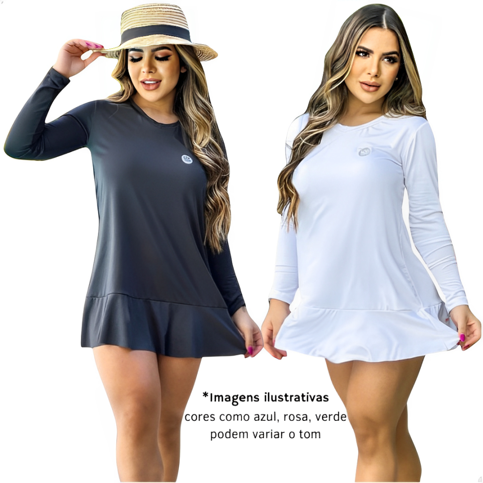 2 Vestidos UV Saída de Praia Manga Longa com Proteção Solar 50FPS P/ Beach Tênis do P ao EXG Plus