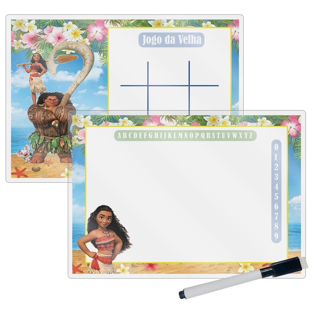 20,30,40,45 Kit's LEMBRANCINHA LOUSA MÁGICA JOGO DA VELHA QUADRO BRANCO INFANTIL TEMA Moana Ou Outro