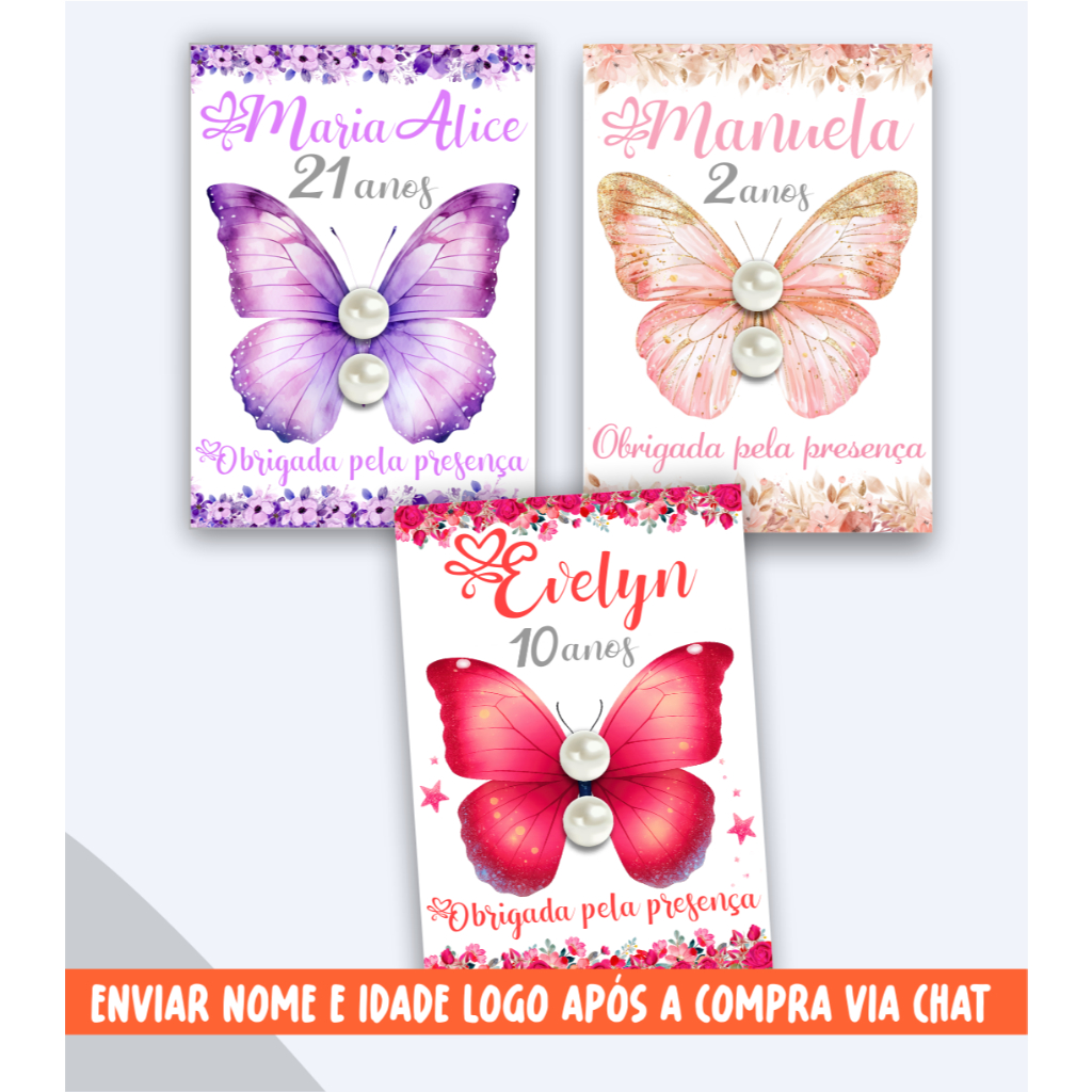 20/30/50/100 Tag com brinco borboletas, Tag personalizada, Lembrancinha Aniversário, Varios Modelos
