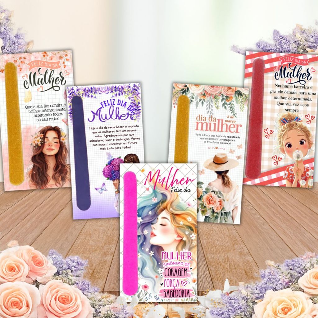 20, 50 ou 100 Lembrancinha Dia Da Mulher Mini Lixa + Card 9x5 Cm - Mimo Cliente