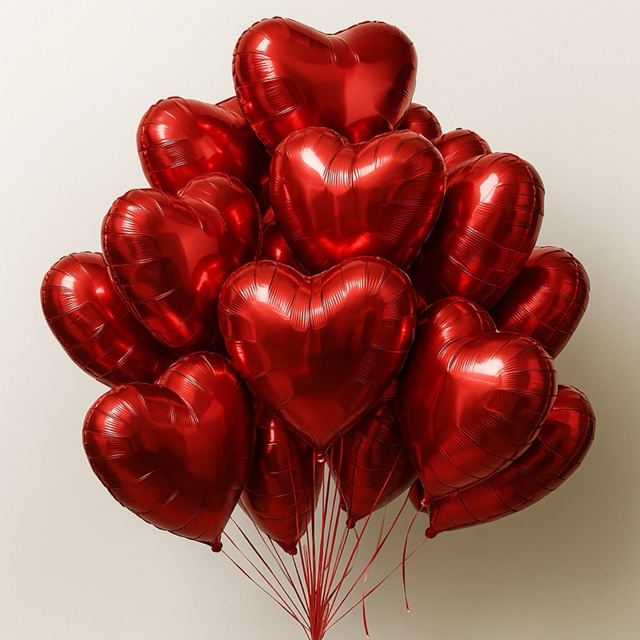 20 Balões de Coração 45cm - Vermelho Metalizado