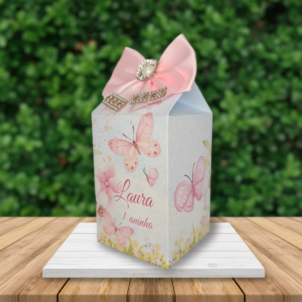 20 Caixinhas Milk Personalizada - Lembrancinhas de Festa (Jardim das Borboletas) Rosa