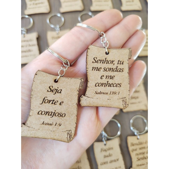 20 Chaveiros Pergaminho Versículos Sortidos Bíblicos MDF vão prontos montados lembrancinha cristã