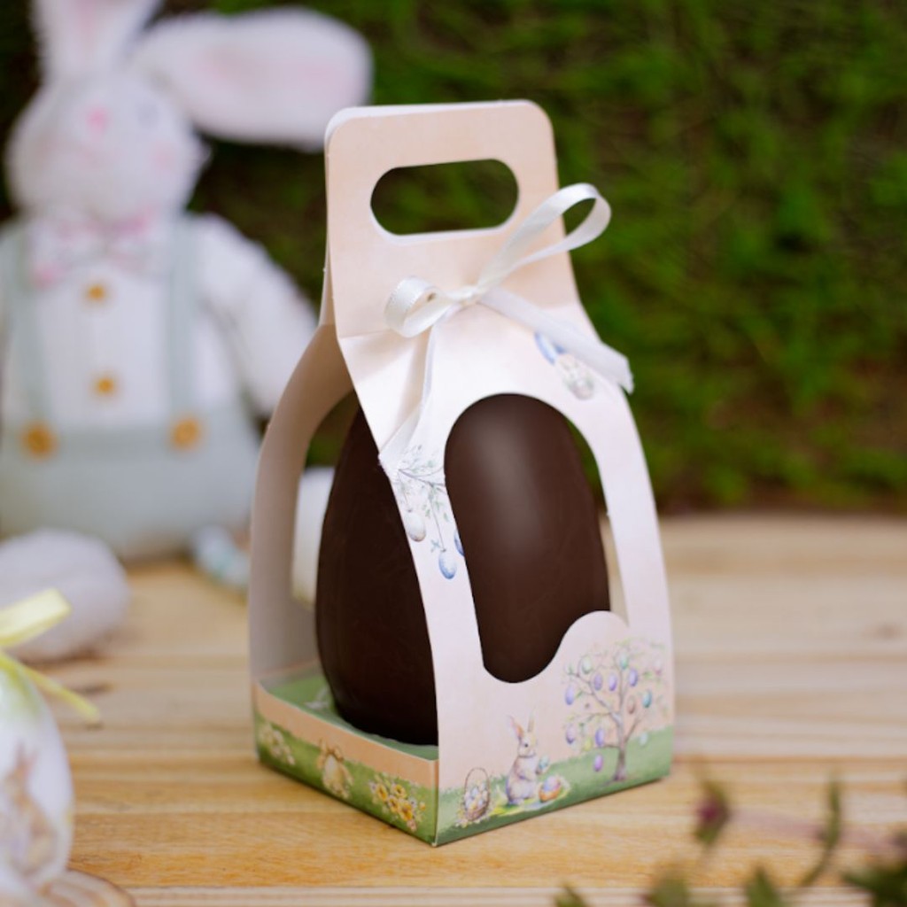 CINTA P/ OVO VERTICAL C/ BERÇO 250G - COELHINHO ENCANTADO É UMA EMBALAGEM PRÁTICA E ALEGRE, IDEAL PARA OVOS DE CHOCOLATE DE 250G COM FORMATO VERTICAL. COM DESIGN TEMÁTICO DE COELHINHO ENCANTADO, A CINTA ADICIONA UM TOQUE FESTIVO E ENCANTADOR, PERFEITA PARA A PÁSCOA. O BERÇO GARANTE QUE O OVO FIQUE ESTÁVEL E SEGURAMENTE ACOMODADO, PROTEGENDO-O DURANTE O TRANSPORTE E EXPOSIÇÃO. FEITA EM MATERIAL RESISTENTE, A CINTA ASSEGURA DURABILIDADE E UMA APRESENTAÇÃO ATRAENTE, SENDO UMA EXCELENTE OPÇÃO PARA COMERCIALIZAÇÃO OU PARA PRESENTEAR. MEDIDAS: 9X9X14 CM ATENÇÃO: - NÃO ACOMPANHA CHOCOLATES