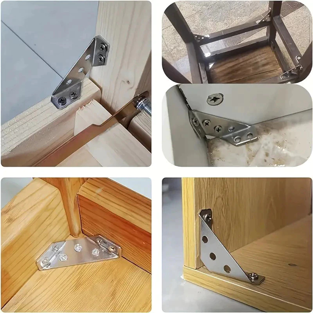 Suportes de canto triangulares especialmente projetados são fixadores essenciais para fixar componentes de móveis. Eles oferecem alta resistência, excelente estabilidade e fácil montagem, resolvendo facilmente problemas como móveis soltos e ruídos estranhos nas camas. - Suportes de canto universais para móveis - Os suportes de canto triangulares especialmente projetados são fixadores essenciais para fixar componentes de móveis. Projetados para uma variedade de estruturas de suporte, eles resolvem eficazmente o problema de móveis de madeira oscilantes. - Construção robusta e durável - Os suportes de conexão trapezoidais são feitos de aço inoxidável espesso e resistente para resistência e durabilidade excepcionais. A excelente resistência à corrosão e à ferrugem garante longa durabilidade, mesmo em ambientes úmidos ou externos. Moldados em uma única peça, eles oferecem um acabamento bonito e liso e um ângulo de 90 graus. Esses suportes de canto de aço inoxidável fornecem uma base sólida para seus móveis e oferecem estabilidade e confiança a longo prazo. - Design amigável - Os suportes trapezoidais de 90 graus possuem furos de montagem escareados, garantindo que os parafusos não se projetem ou prejudiquem a aparência do móvel. Todos os suportes de canto são fixados com segurança por parafusos, para que você nunca precise se preocupar com a possibilidade de seus móveis se desmancharem. - Fácil instalação - Quer saber como instalar um suporte de ângulo reto? Basta fazer furos onde deseja fixar os suportes da escada, inserir os parafusos nos suportes de ângulo e, em seguida, usar uma chave de fenda para inseri-los. Você vai adorar o processo simples, prático e rápido. - Versatilidade e adaptabilidade - Os conectores de canto para móveis são compatíveis com uma ampla variedade de móveis e são perfeitos para diversas aplicações. Sejam usados como conectores de canto, suportes triangulares ou reforço de estrutura, esses produtos oferecem excelente estabilidade para prateleiras, armários, mesas e cadeiras em qualquer casa ou escritório. Eles também são adequados para consertar móveis antigos. Também podem ser facilmente integrados a móveis existentes ou projetos "faça você mesmo".