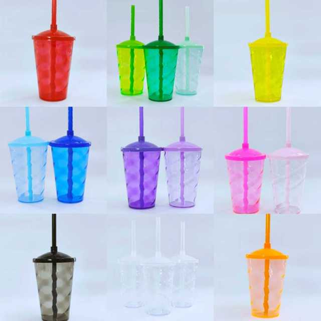 20 copos Twister 400ml Translúcido com tampa e canudo Art Milly